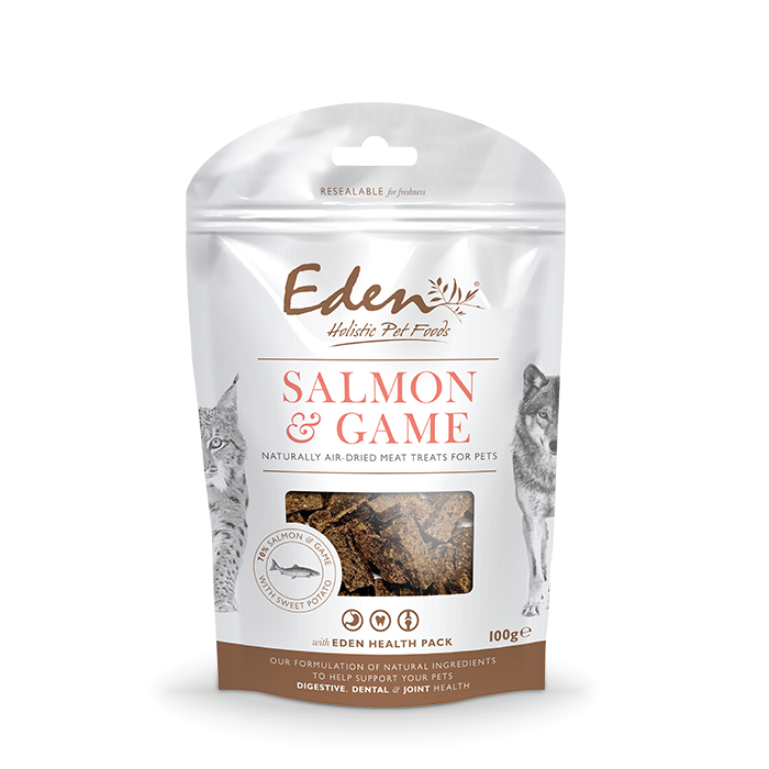 Eden Salmon & Game treats are suitable for both cats and dogs, boasting a 70% meat content including, the use of novel game proteins, buffalo, bison and wild boar. Not only do these meats allow for a luxurious and exotic taste but also provide excellent nutritional value, and are a great choice for pets with sensitive stomachs.