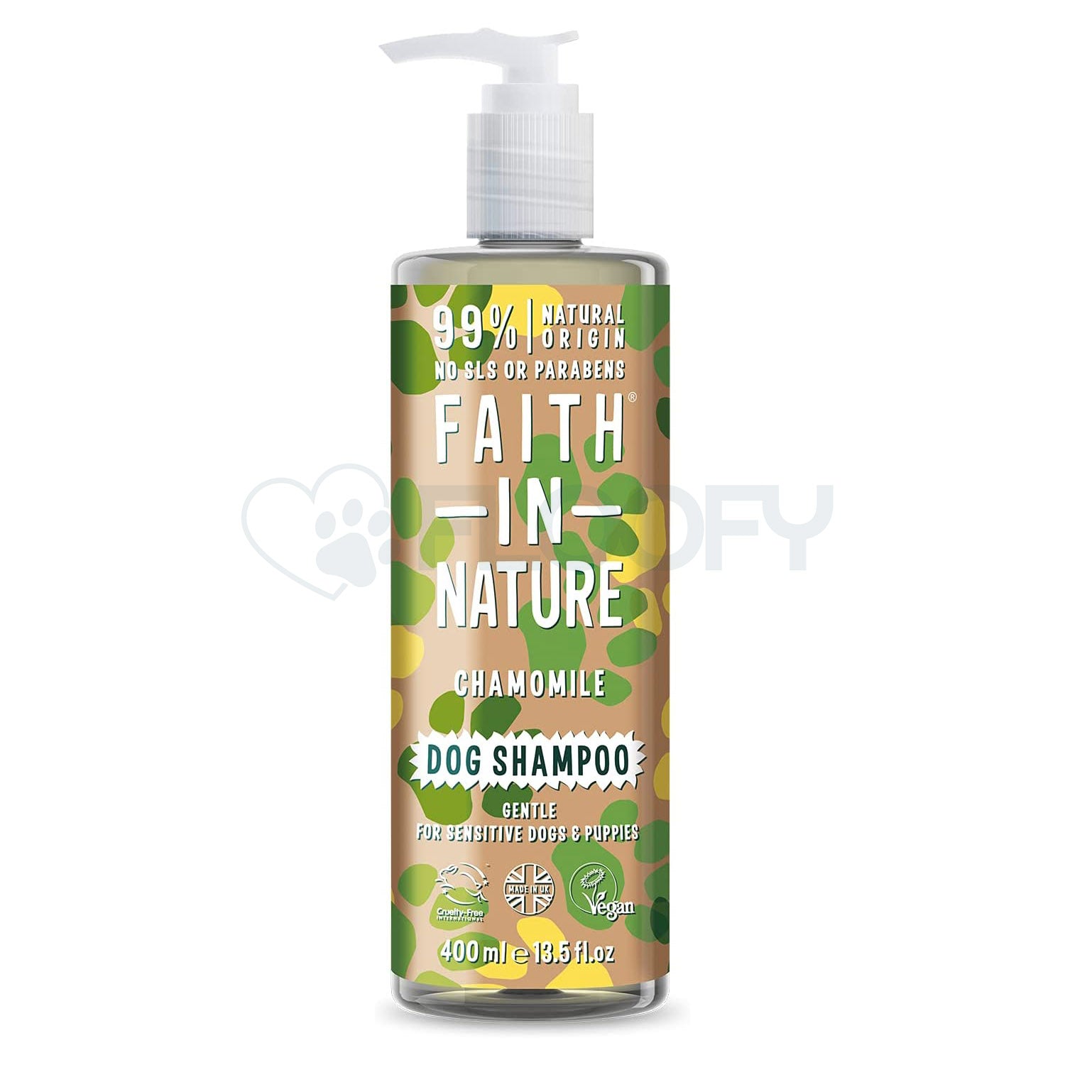 Faith in Nature's Camomile dog shampoo has been specially formulated with vitamin E to promote a healthy and shiny coat and is pH-balanced to be gentle on your dog's skin.