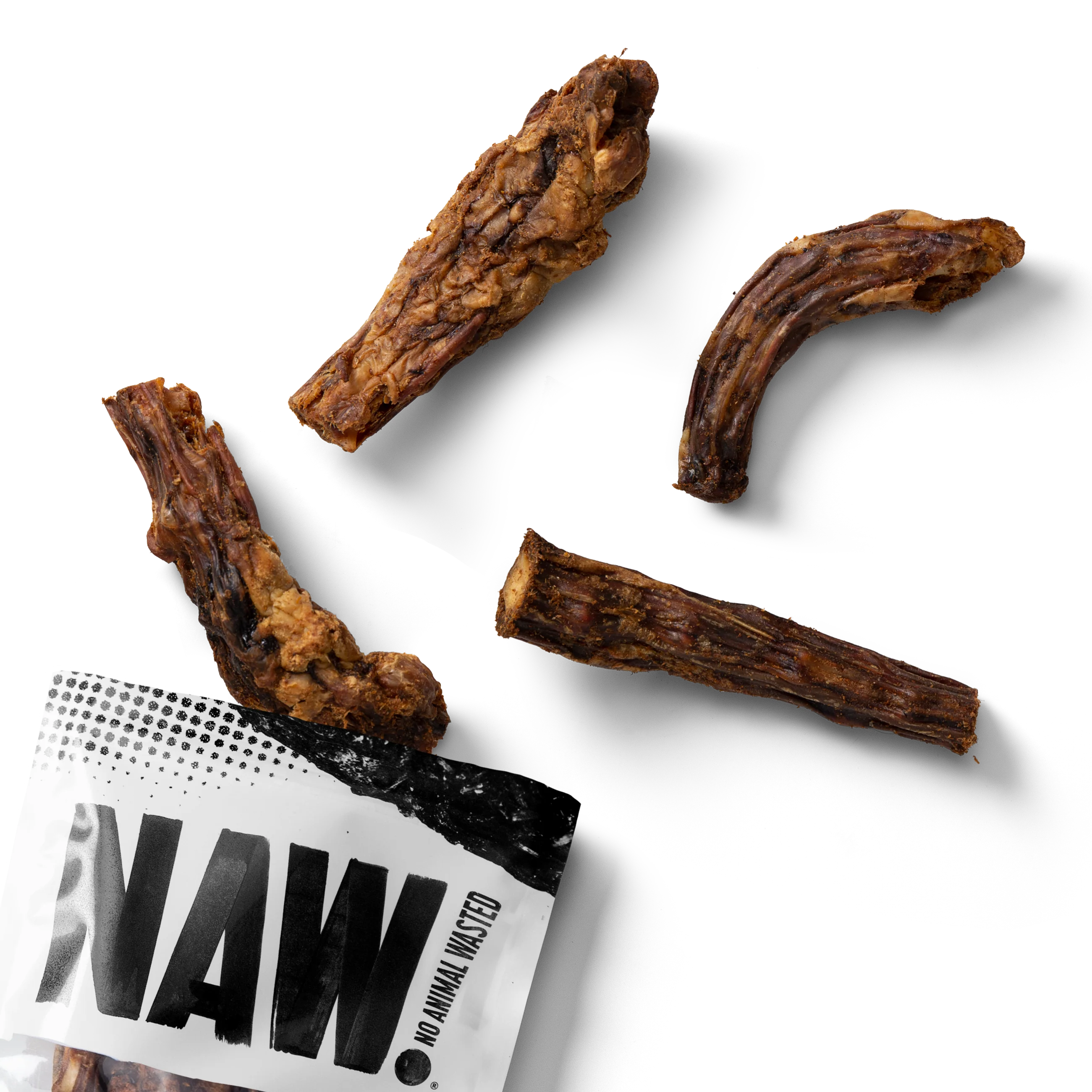 Improve your dog's health and happiness with NAW Buffalo Tails. These air-dried, ruff-cut tails are packed with Omega 3 to promote a healthy heart and keep their tails wagging.